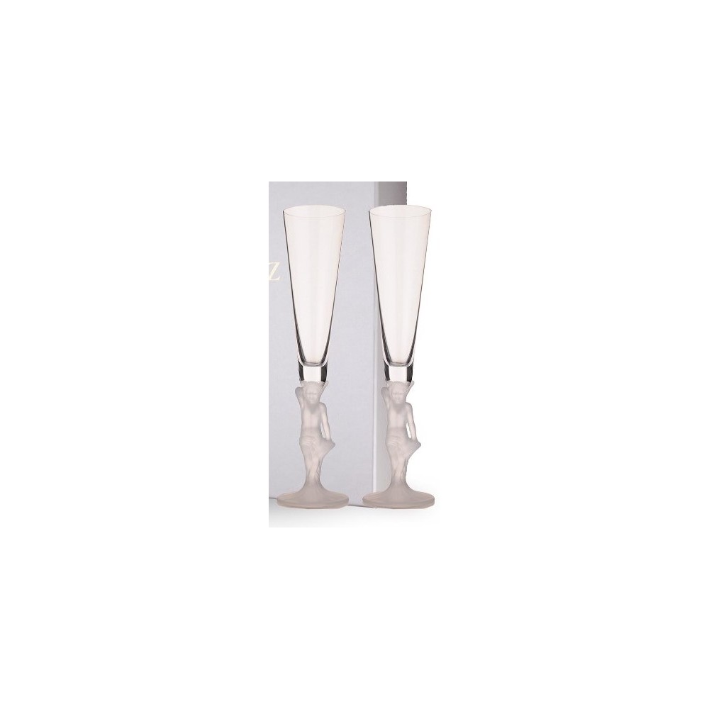 Le coffret propose une bouteille de champagne et deux flûtes en cristallin, le pied taillé d'après la statuette en bronze dans le jardin de Deutz.