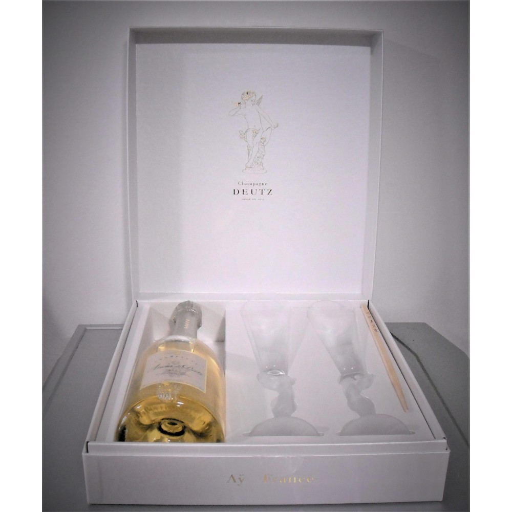 Inspirée par l'angelot de bronze dont elle tire son nom, AMOUR DE DEUTZ est une cuvée rare. Il faut que les fées de la Champagne éclairent les cieux de l'année et se penchent sur le berceau du Chardonnay pour que, une fois pressé, vinifié et assemblé avec cœur et passion, l'alchimie des terroirs donne naissance à "l'Harmonie", syntonie de l'Amour. Séductrice avec sa robe pure et cristalline, Amour de Deutz, est une cuvée "Blanc de Blancs" subtile, profonde et délicate, presque envoûtante.