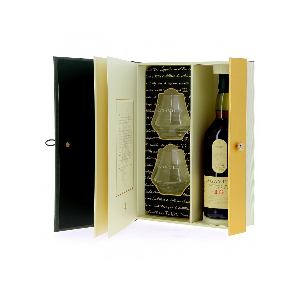 Ce single malt de l'île d'Islay très tourbé et iodé appartient à la célèbre gamme des Classic Malts. De couleur vieil or à reflets ambrés, le nez ample est marqué par des notes animales et d'orge fumée, avec une trace de tourbe onctueuse. La bouche, tourbée, révèle au fur et à mesure des notes marines (poisson fumé, iode) sur fond de réglisse. La finale de ce Lagavulin 16 ans d'âge est également marquée par des notes finement boisées.